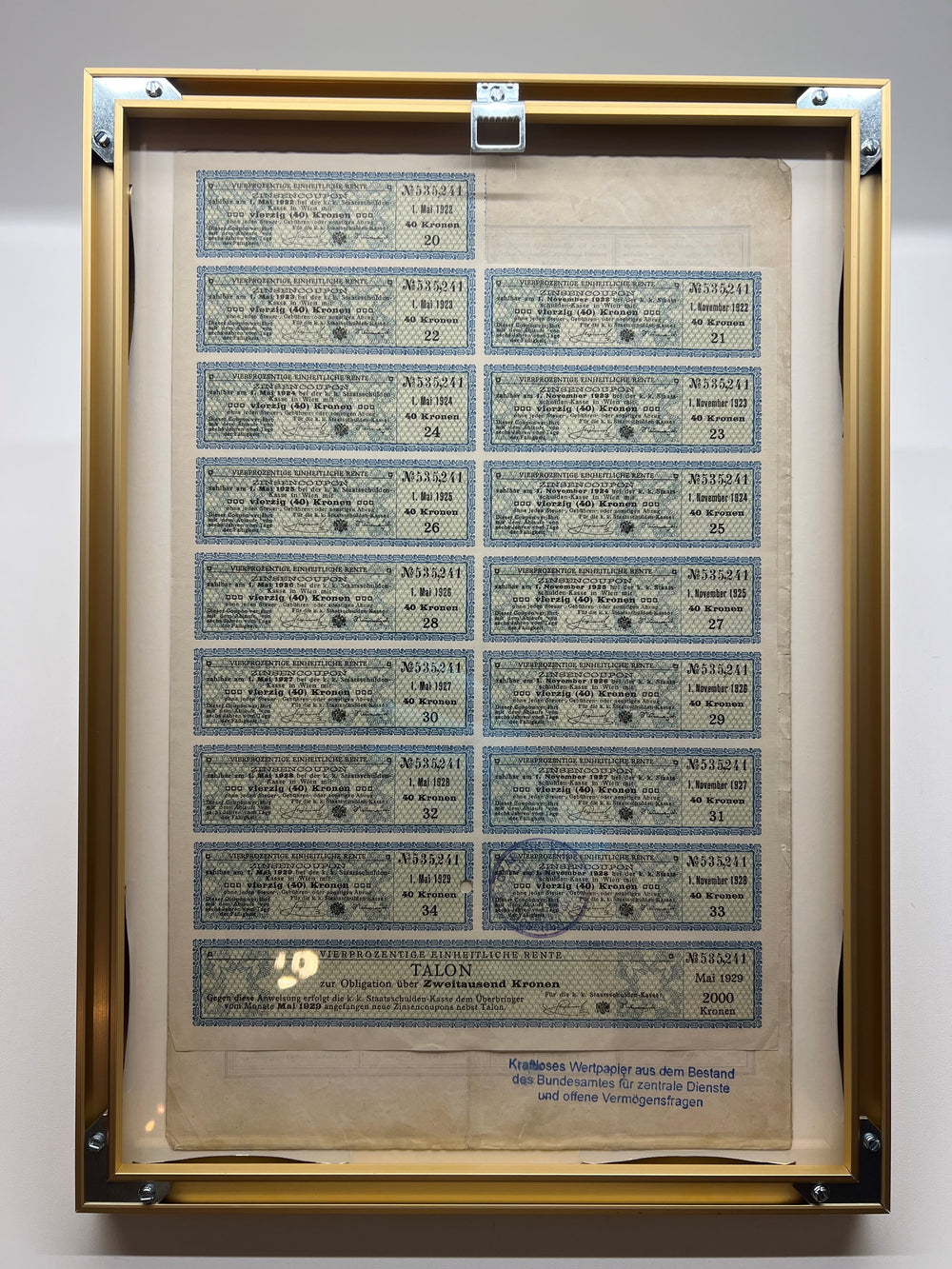 Original, annullierte Anleiheurkunde, Zustand vergleichbar mit dem auf den Bildern gezeigten.
